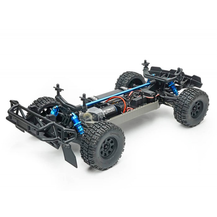 Completing the package is the Apache’s stylish semi-scale Trophy Truck bodyshell, fi ished with impactful graphics in either blue or red. Scale details include moulded roof skid rails, an LED light bar, body post reinforcement plates, and new rear bumper mud flaps.